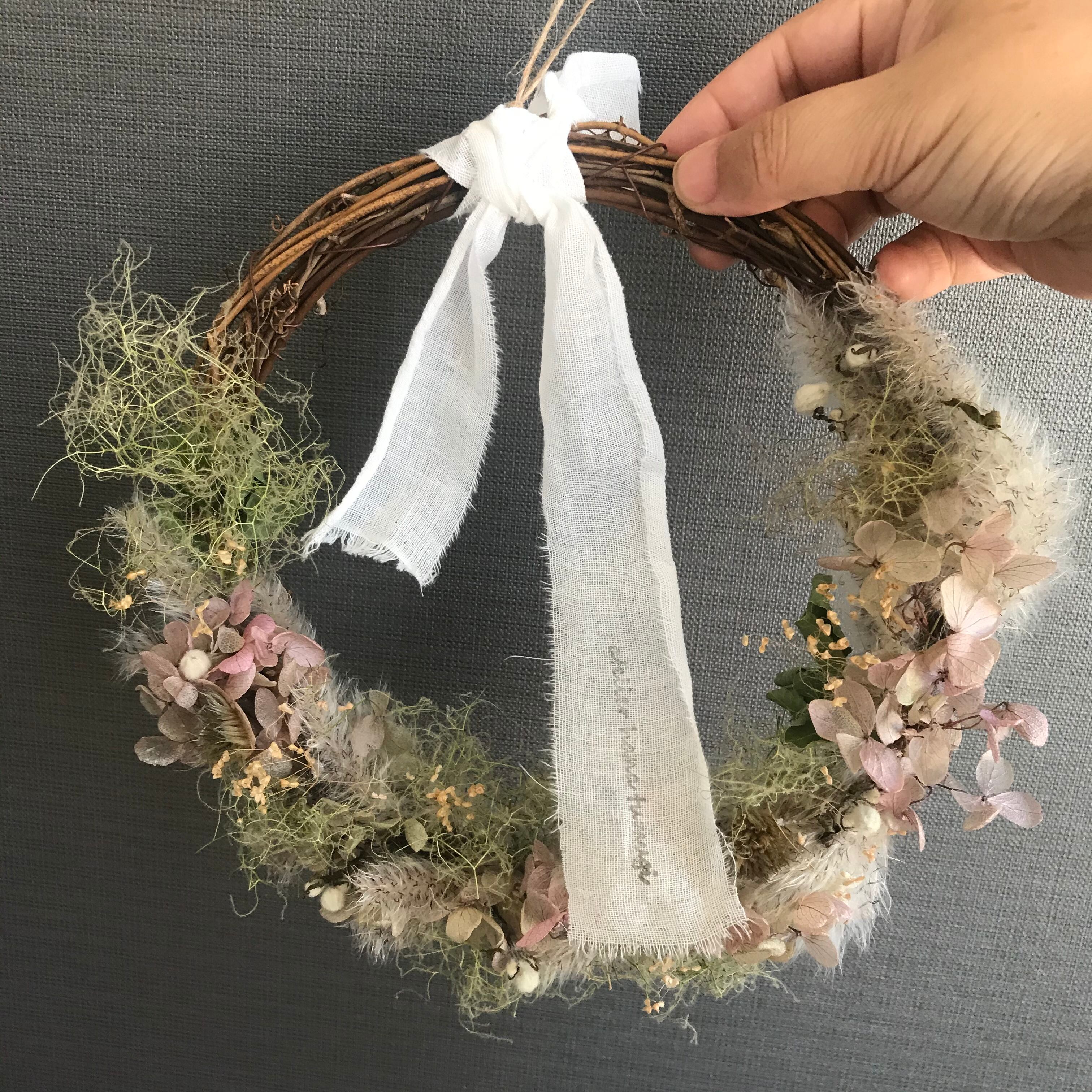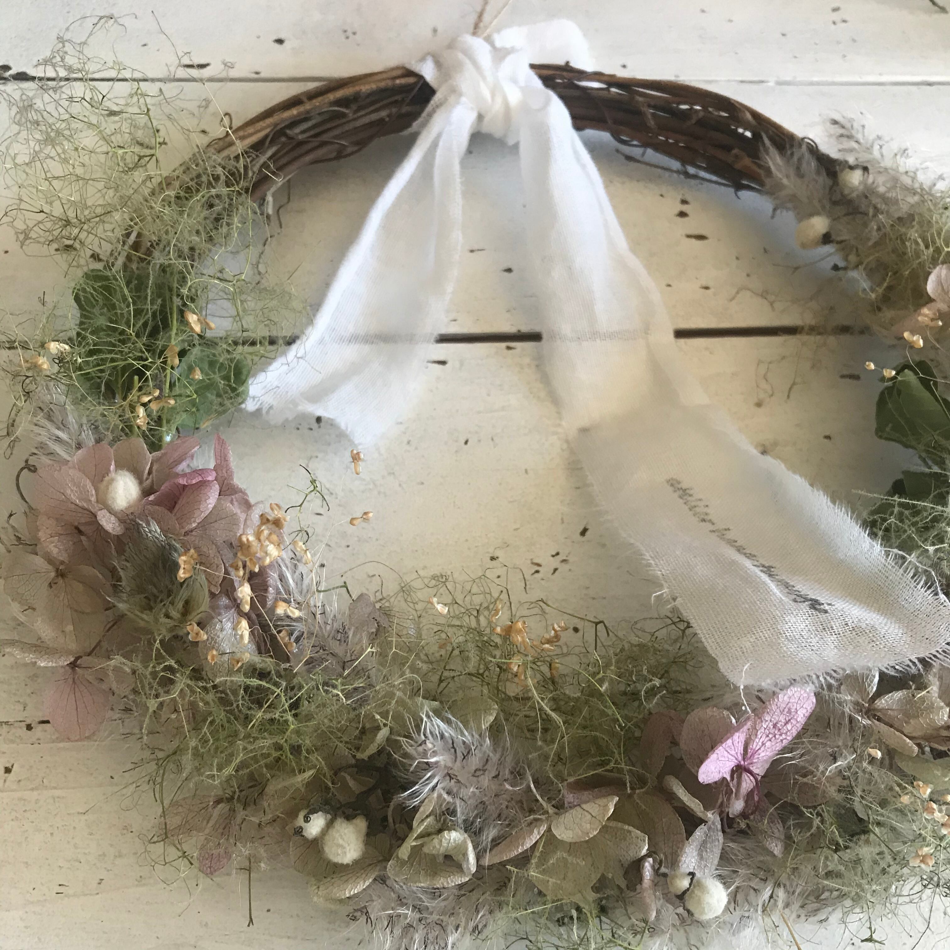 田舎の風景を思わせるようなナチュラルなほっこりするリースです