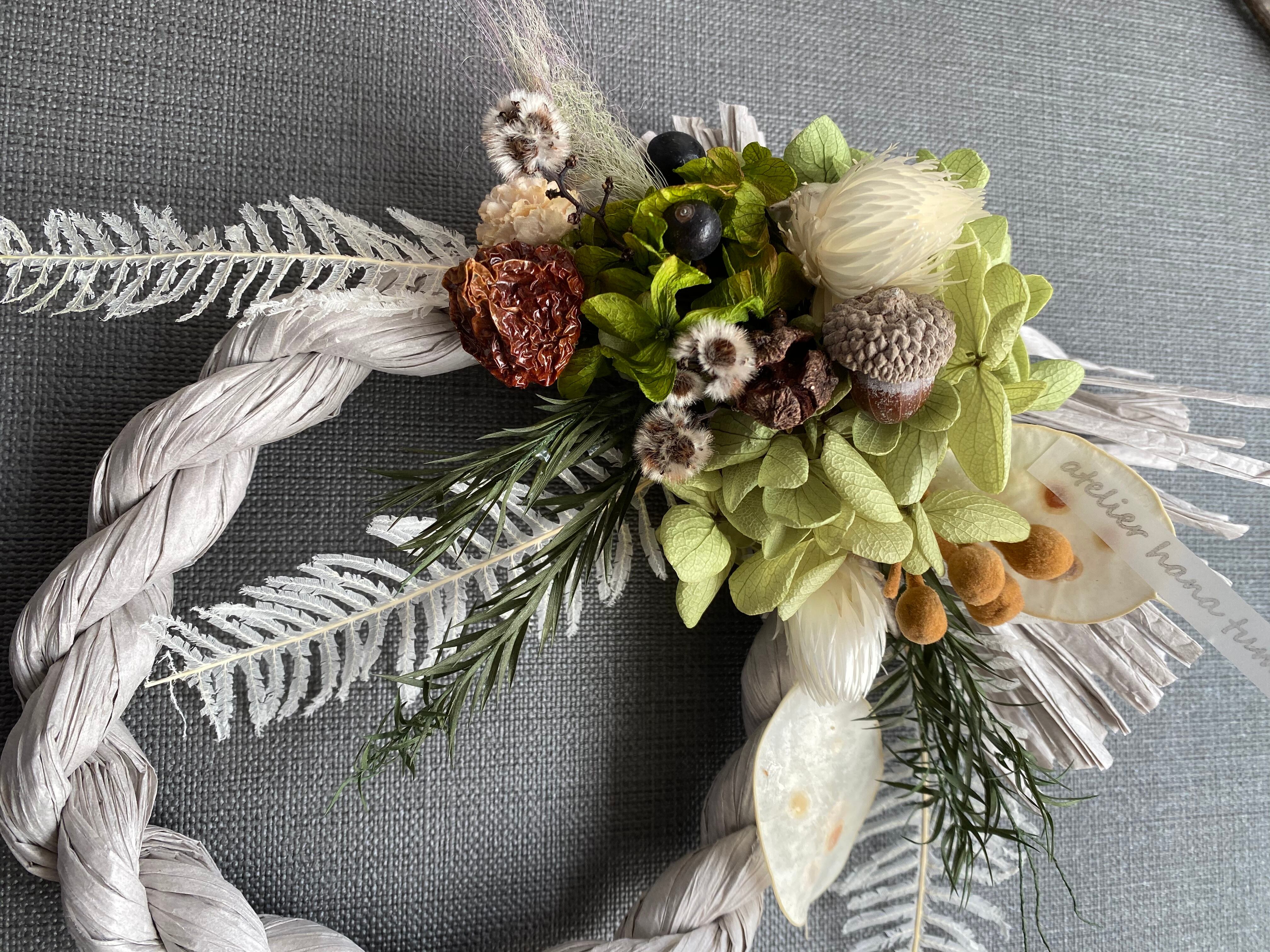 プリザーブドフラワー、ドライフラワーを使用しています。。