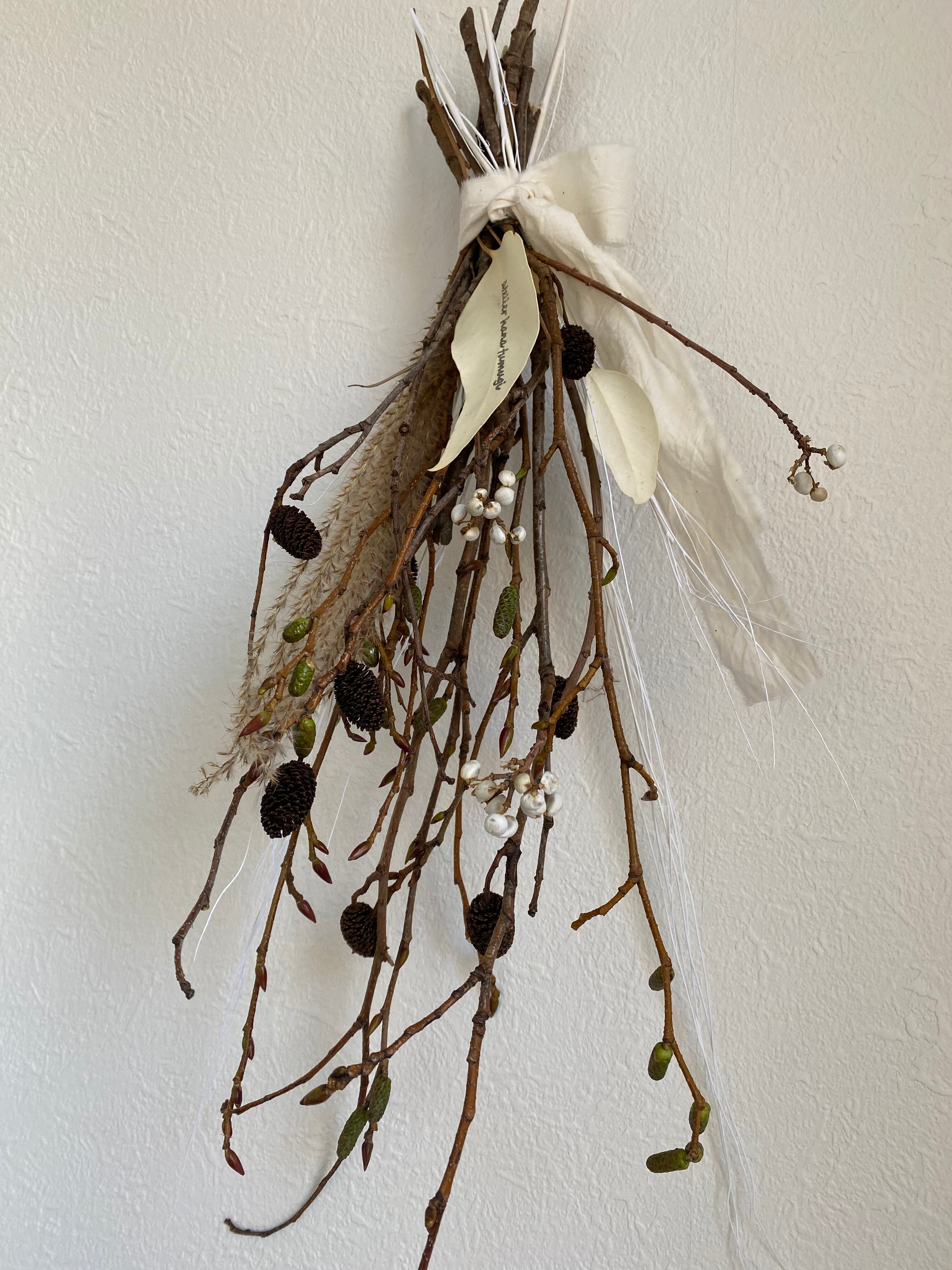 ハシバミの枝とナンキンハゼのシンプルでお洒落なスワッグです。