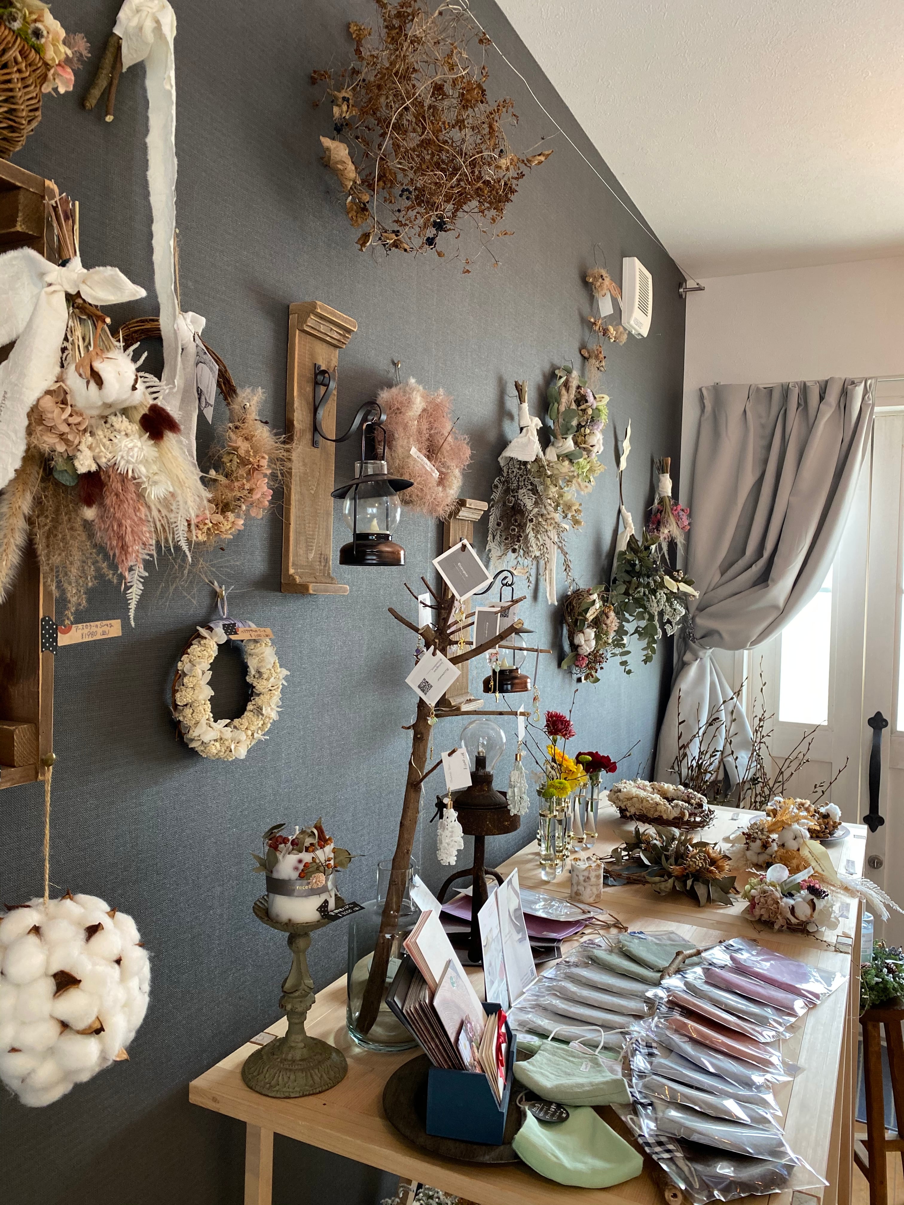 ハンドメイド作品で、ドライフラワー使用のため、配送時に花びらが落ちる場合もございます。ご理解ください。