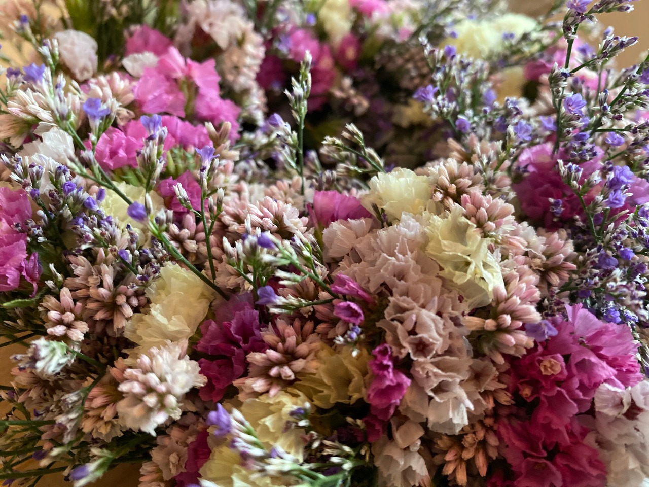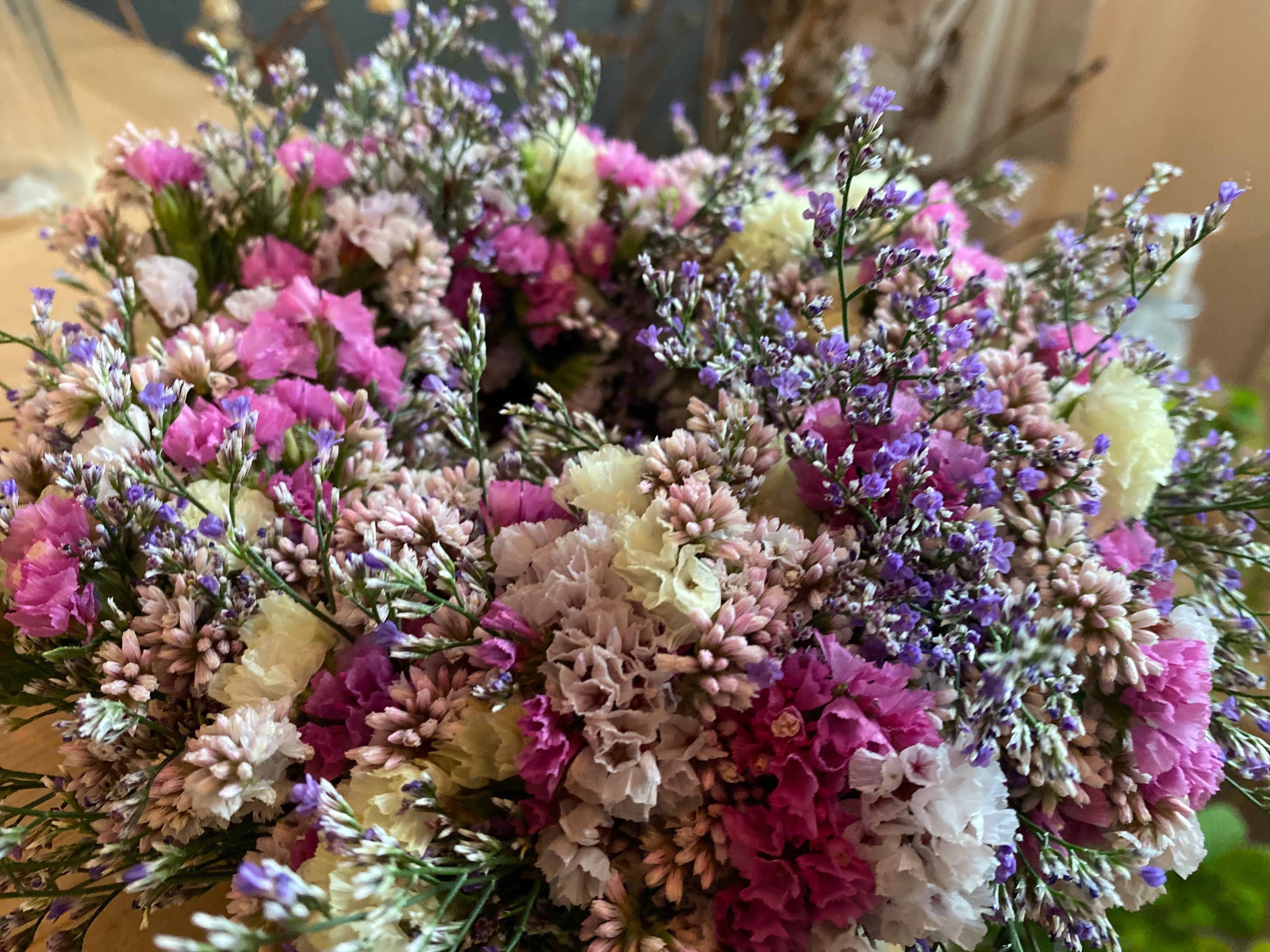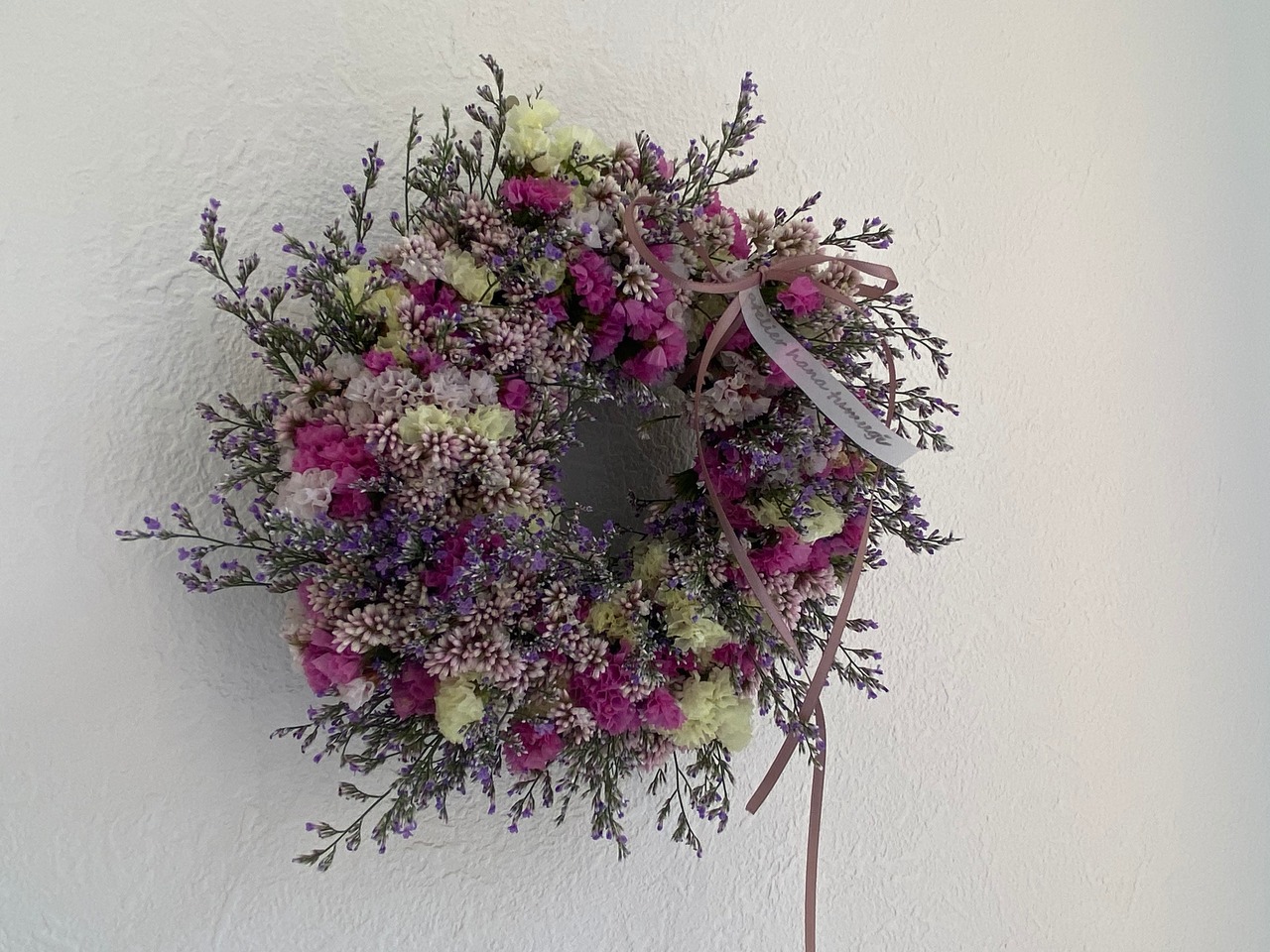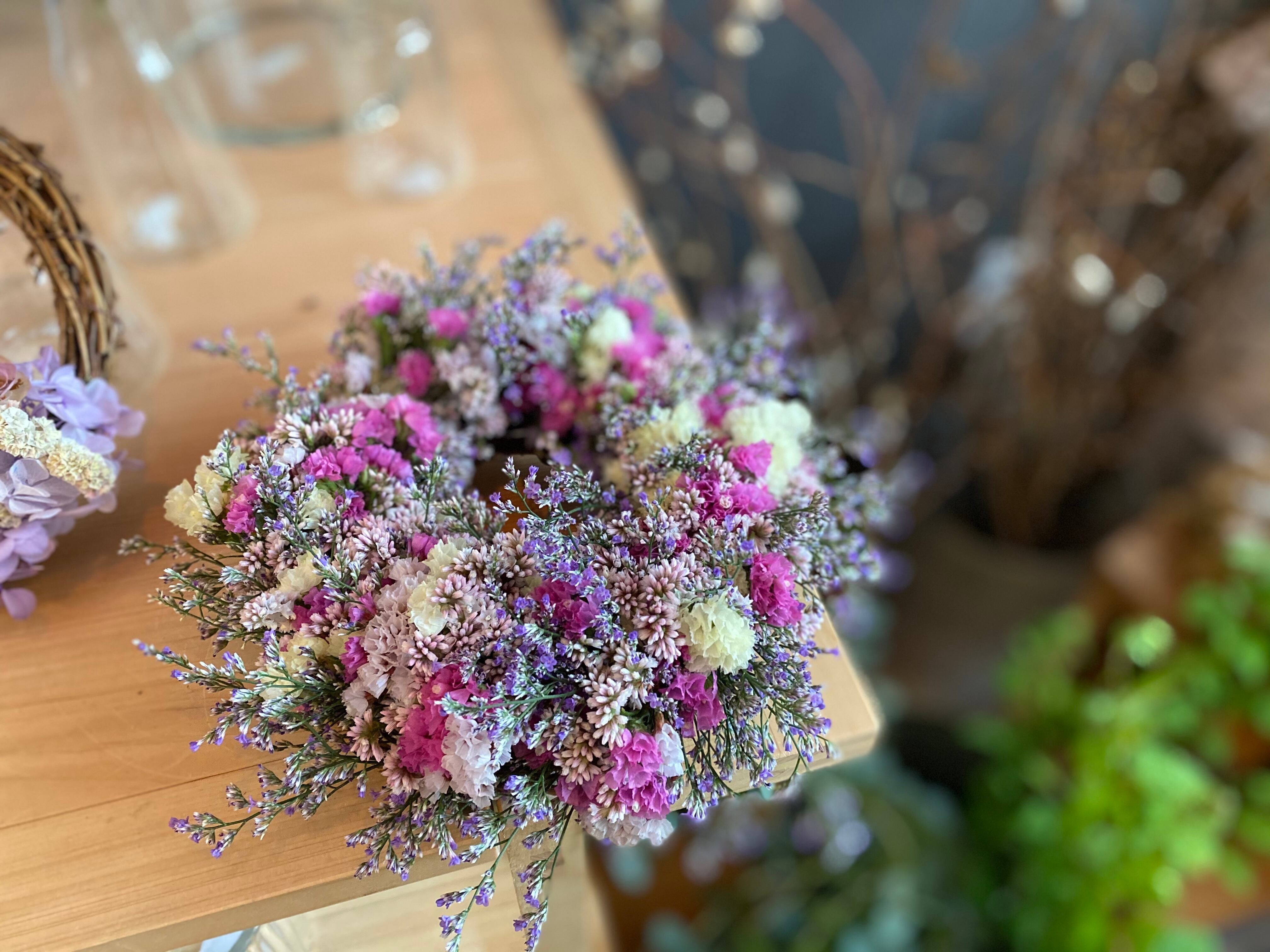 ハンドメイド作品で、ドライフラワー使用のため、配送時に花びらが落ちる場合もございます。ご理解ください。